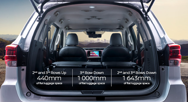 The Nissan TERRA offers best-in-class interior space. Three rows with seven seats are arranged in an amphitheatre-style giving all passengers better visibility. Conveniences include a fold-out armrest with cupholders, climate control and multiple USB and 12V charging points offering something special in every seat.